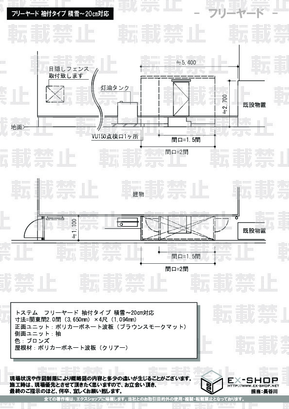 | サイズ | 間口 3,650mm 出幅 1,094mm |