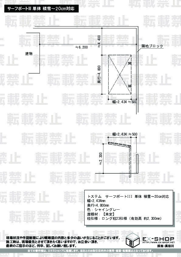 | 屋根高等 | ロング柱23仕様(有効高 約2,300mm) |