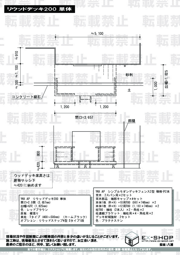 この度は、丁寧なご感想を頂戴し、誠に有り難うございます。また、施工につきましても、お褒めのお言葉を頂き、重ねて御礼申し上げます。施工士にとりましても、このようなお言葉が、何よりの励みとなっております。レッドブラウンのリウッドデッキ200 単体の施工により、新しく出来たスペースを有効にご利用頂けたら幸いでございます。今後も、お客様に満足して頂けるよう精進して参りますので、また機会がございましたら、是非、エクスショップをご用命頂きますよう宜しくお願い申し上げます。