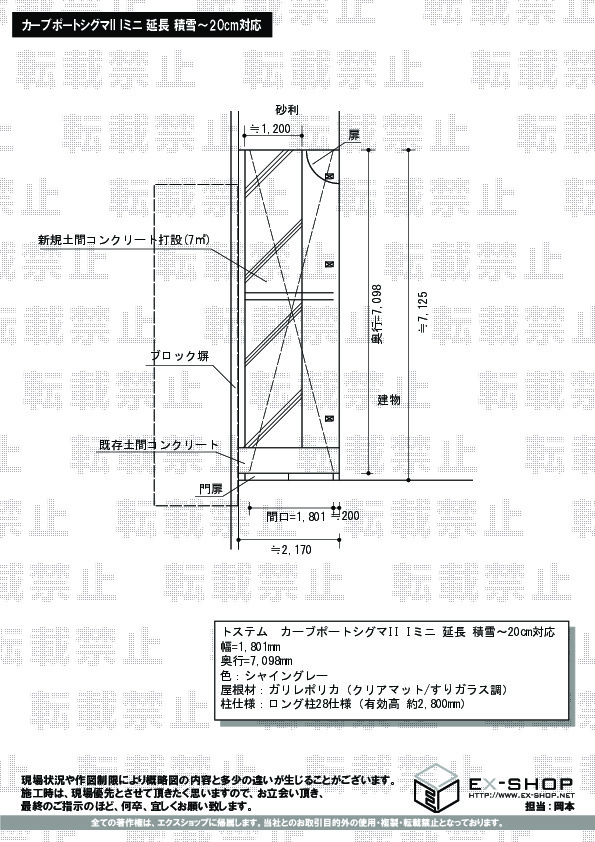 | 屋根高等 | ロング柱28仕様(有効高 約2,800mm) |