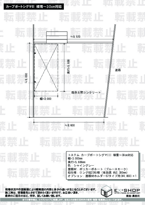| サイズ | 幅 3,000 mm 奥行 5,686mm |