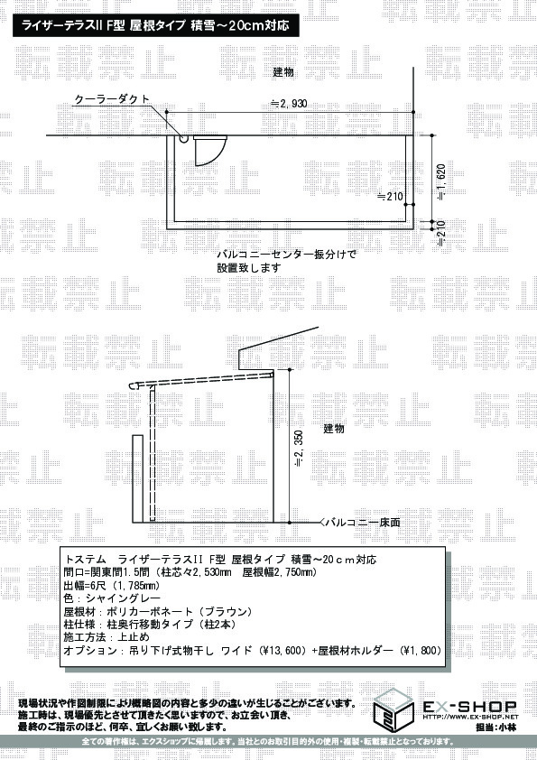 サイズ | 屋根幅 2,750mm 出幅 1,785mm |