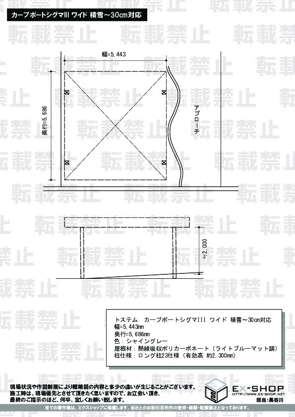| 屋根高等 | ロング柱23仕様(有効高 約2,300mm) |