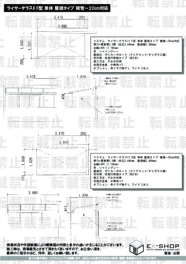 サイズ | 屋根幅 3,660mm 出幅 1,785mm |