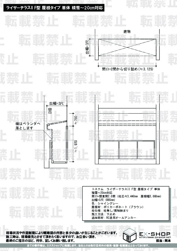 サイズ | 屋根幅 3,660mm 出幅 885mm |