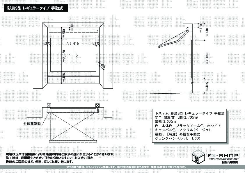 サイズ | 間口 2,730mm 出幅 2,000mm |