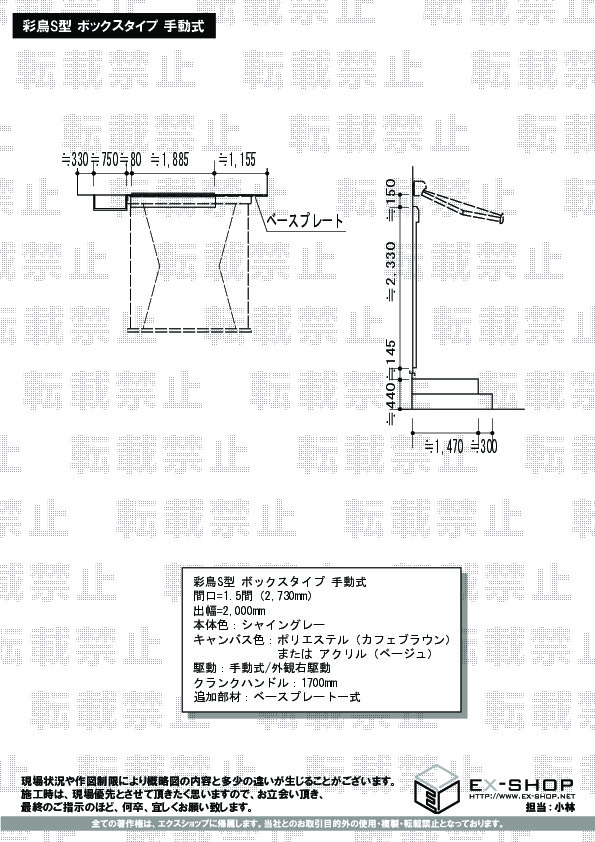 サイズ | 間口 2,730mm 出幅 2,000mm |
