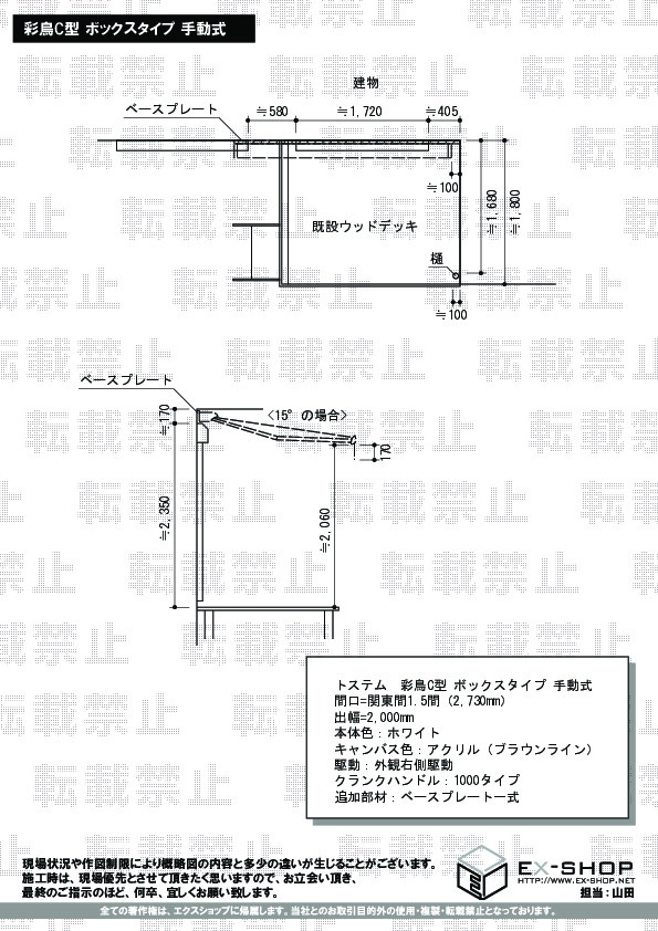 | サイズ | 間口 2,730mm 出幅 2,000mm |