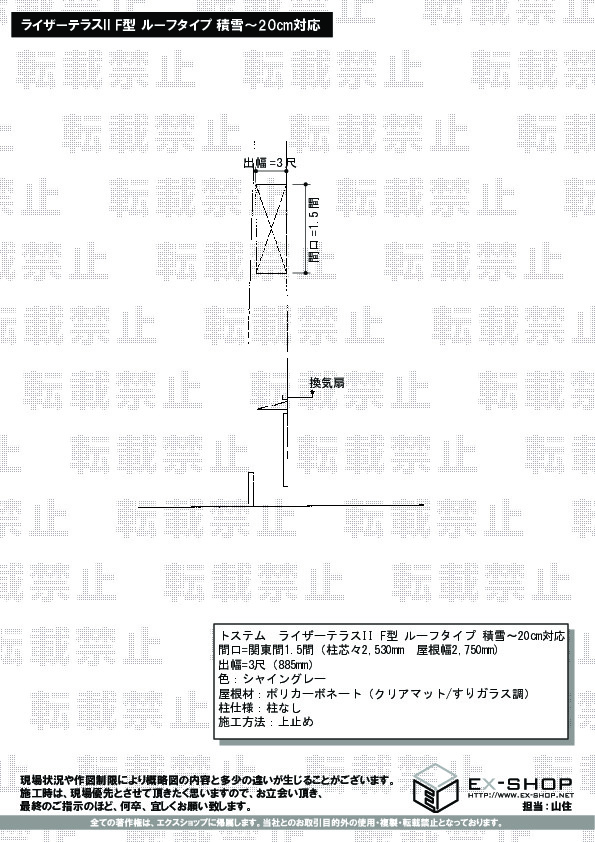 | サイズ | 屋根幅 2,750mm 出幅 885mm |