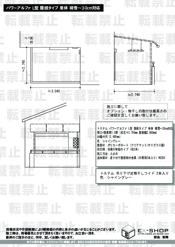サイズ | 屋根幅 3,080mm 出幅 2,685mm |