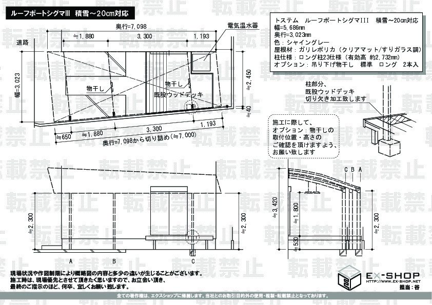| 屋根高等 | ロング柱23仕様(有効高 約2,732mm) |