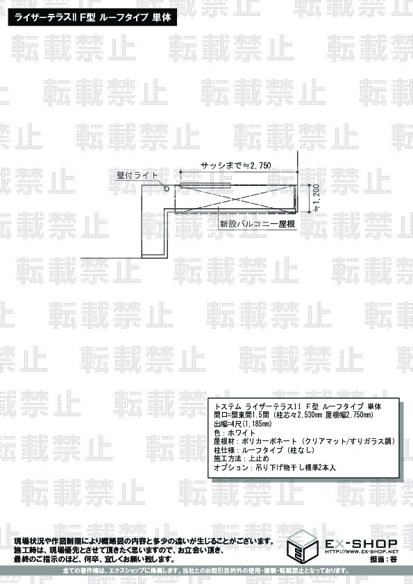 | サイズ | 屋根幅 2,750mm 出幅 1,185mm |