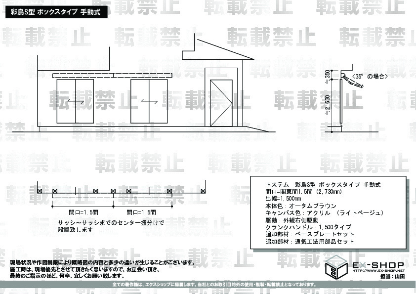 サイズ | 間口 2,730mm 出幅 1,500mm |