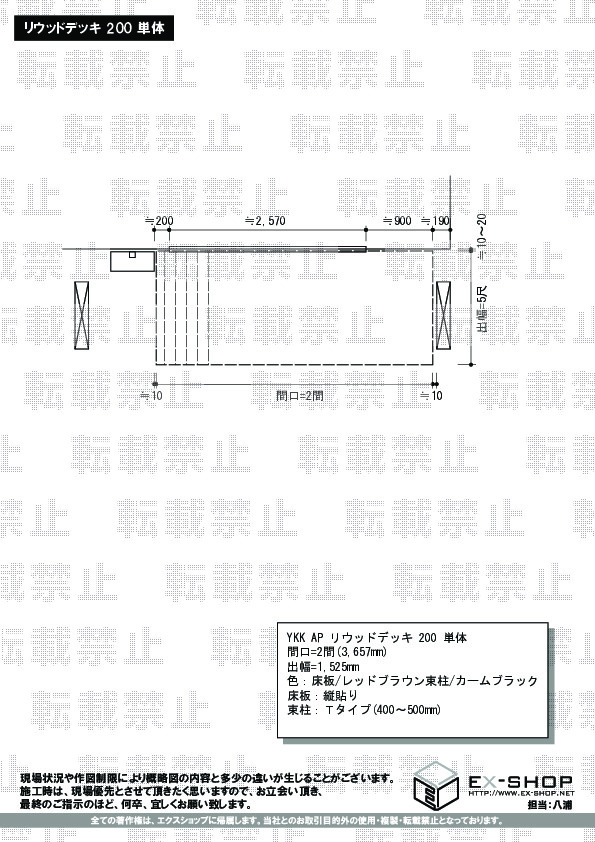 | サイズ | 間口 3,657mm 出幅 1,525mm |