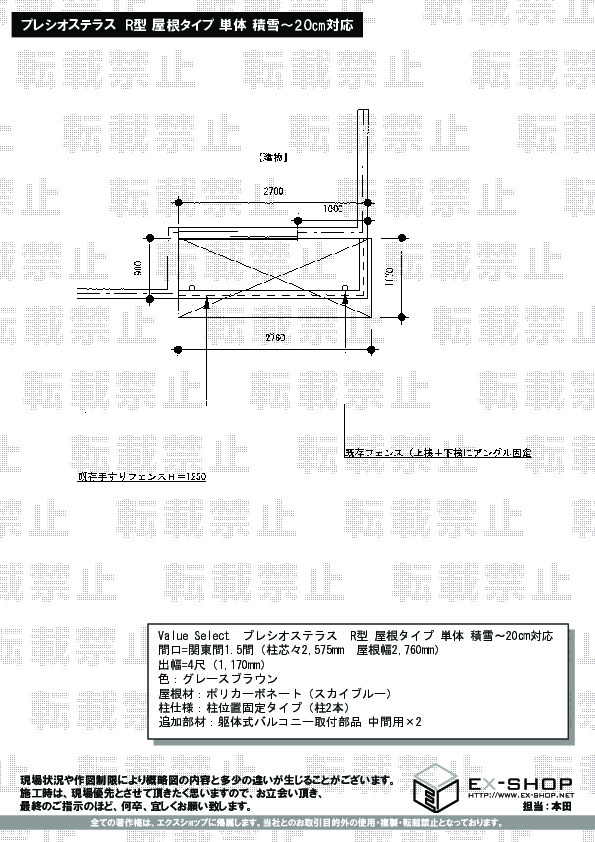 サイズ | 屋根幅 2,760mm 出幅 1,170mm |