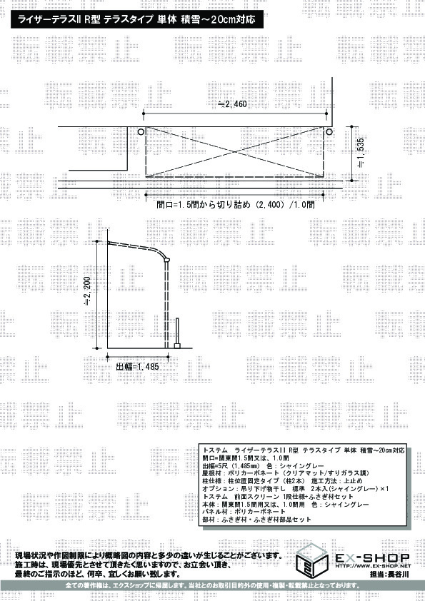 | サイズ | 屋根幅 2,750mm 出幅 1,485mm |