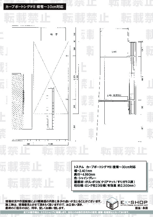 屋根高等 | ロング柱23仕様(有効高 約2,300mm) |