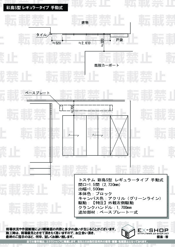 彩鳥S型 レギュラータイプ 手動式の施工をご依頼頂きまして、誠に有難うございます。この度の施工の様子を見て、お客様がご不安に思われましたこと、誠に心苦しく存じております。今後は、このようなことのございませぬよう、全スタッフのスキルアップに努めて参りたいと存じます。この度のご利用、誠に有難うございました。