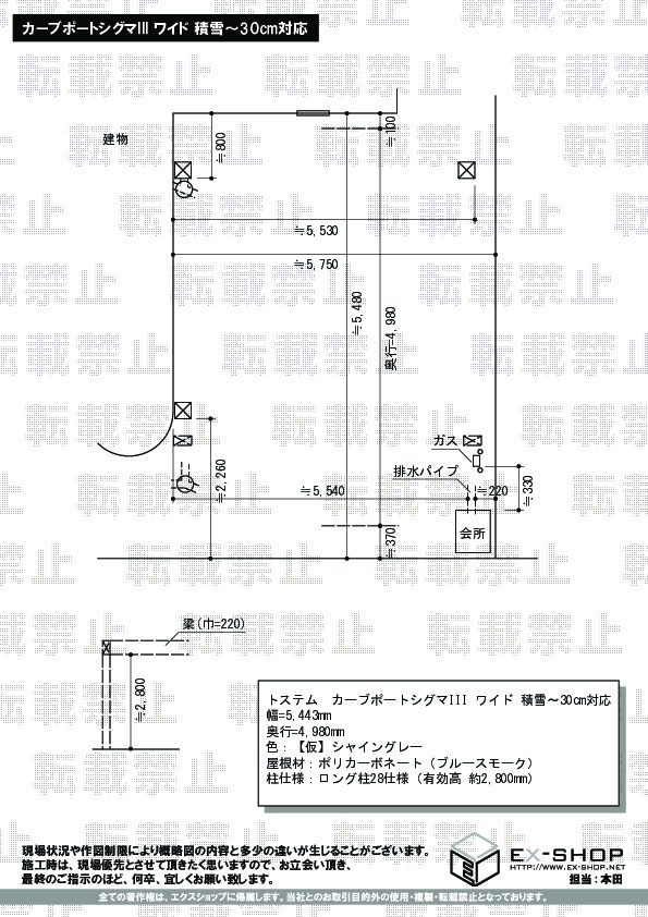| 屋根高等 | ロング柱28仕様(有効高 約2,800mm) |