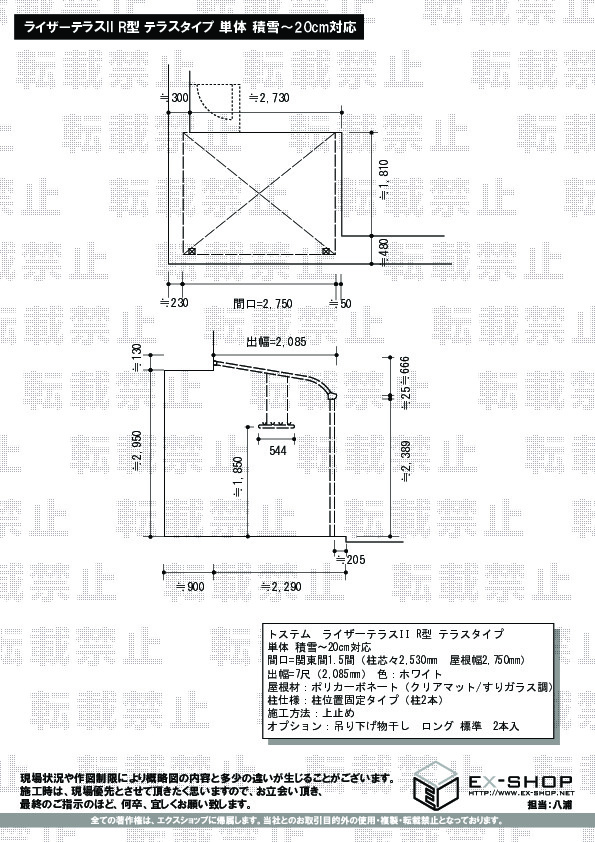 | サイズ | 屋根幅 2,750mm 出幅 2,085mm |