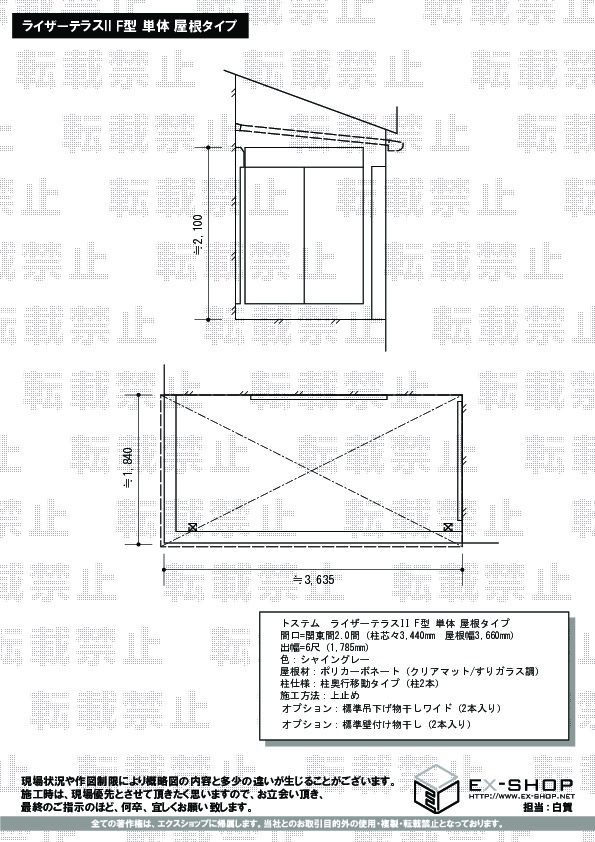 | サイズ | 屋根幅 3,660mm 出幅 1,785mm |