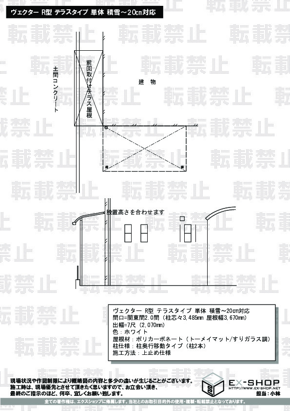 サイズ | 屋根幅 3,670mm 出幅 2,070mm |