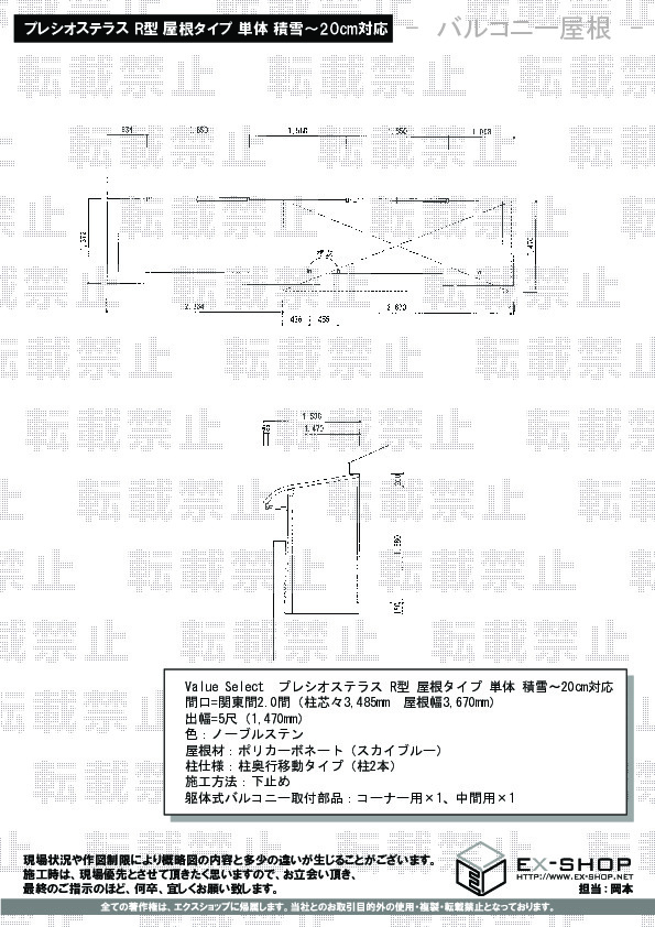 | サイズ | 屋根幅 3,670mm 出幅 1,470mm |