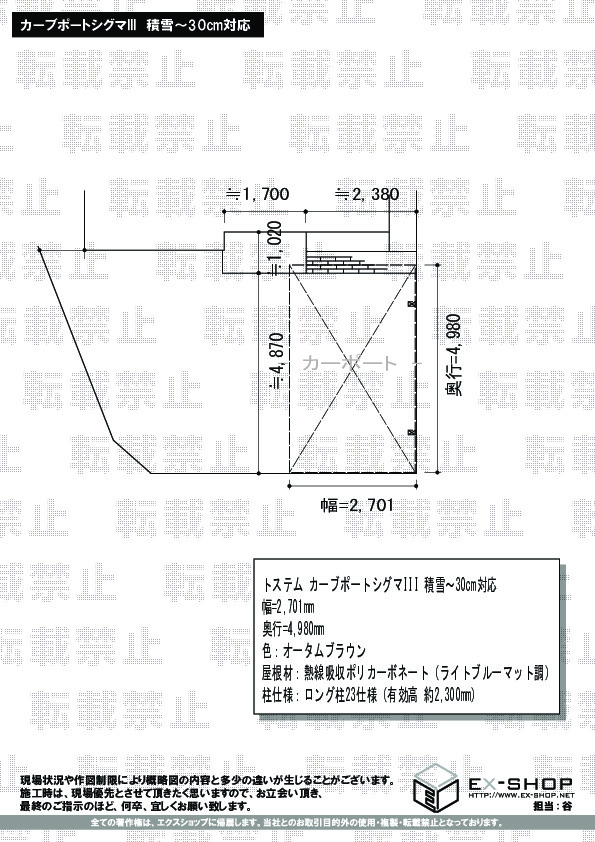 | 屋根高等 | ロング柱23仕様(有効高 約2,300mm) |