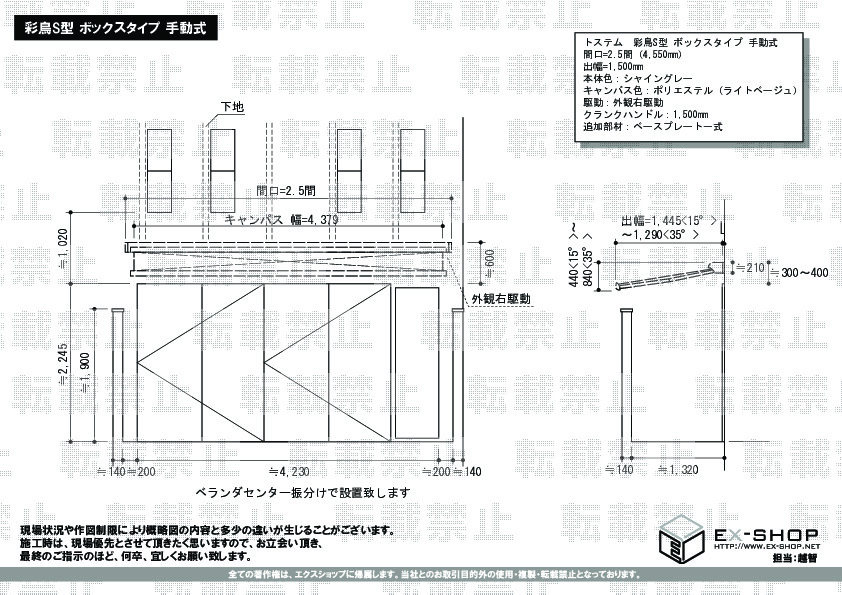 サイズ | 間口 4,550mm 出幅 1,500mm |