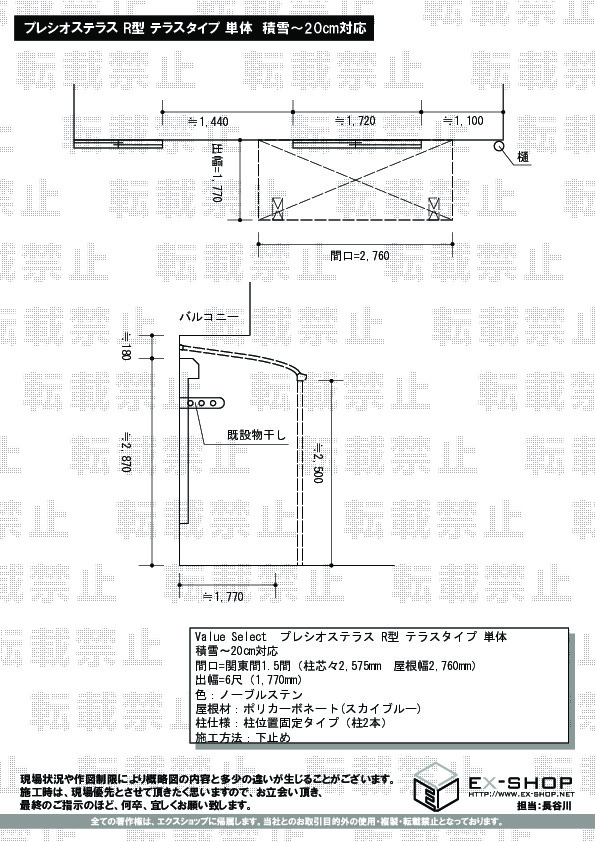サイズ | 屋根幅 2,760mm 出幅 1,770mm |
