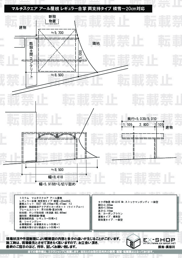 | 屋根高等 | ロング柱仕様(有効高 約2,600mm) |
