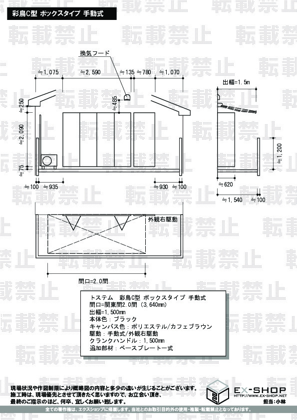 サイズ | 間口 3,640mm 出幅 1,500mm |
