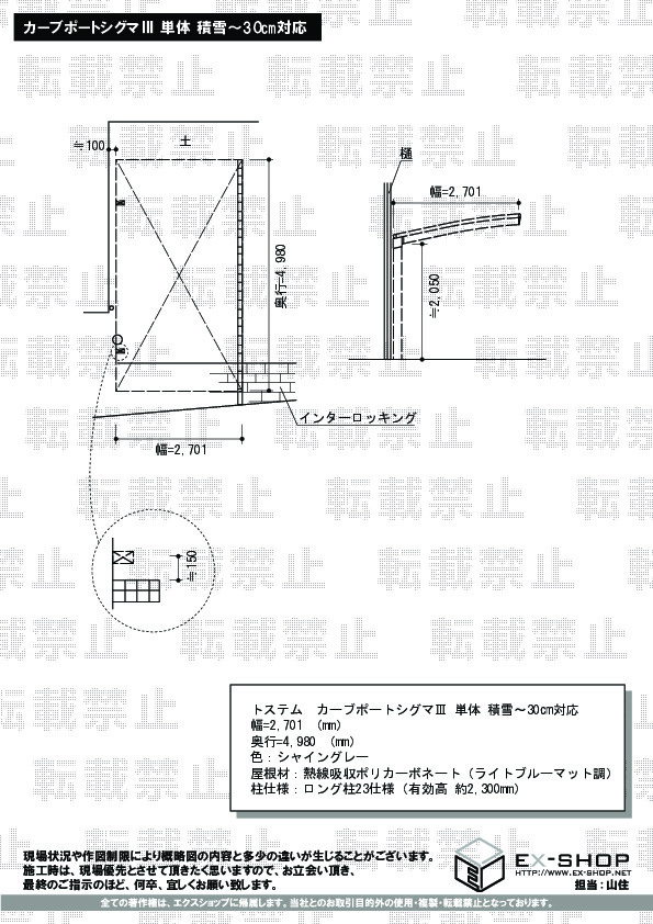 屋根高等 | ロング柱23仕様(有効高 約2,300mm) |
