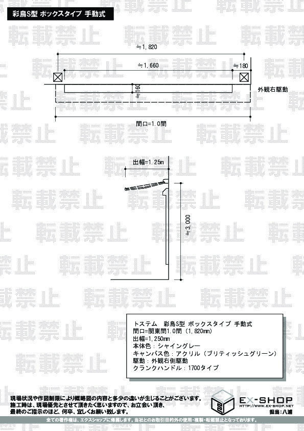 | サイズ | 間口 1,820mm 出幅 1,250mm |