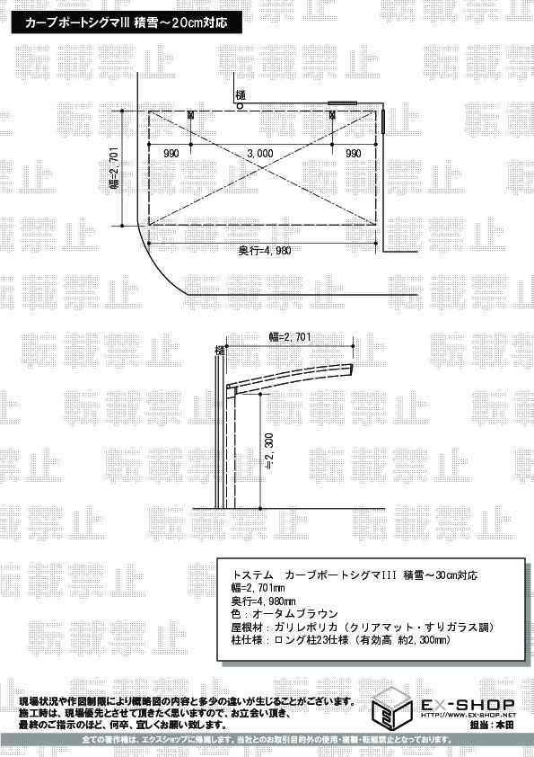 | 屋根高等 | ロング柱23仕様(有効高 約2,300mm) |