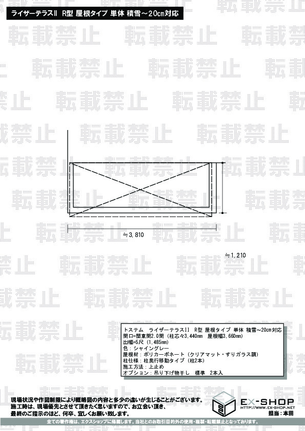 サイズ | 屋根幅 3,660mm 出幅 1,485mm |