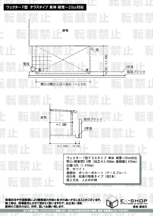 | サイズ | 屋根幅 3,670mm 出幅 1,470mm |