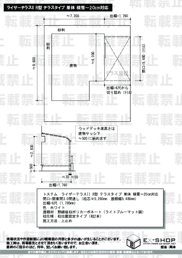 サイズ | 屋根幅 5,480mm 出幅 1,785mm |