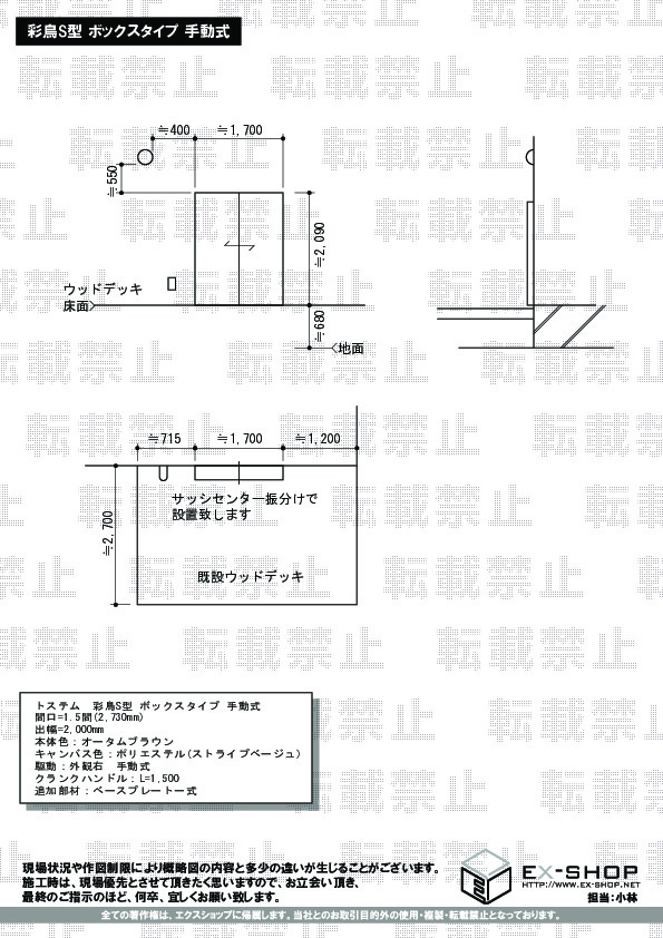 サイズ | 間口 2,730mm 出幅 2,000mm |
