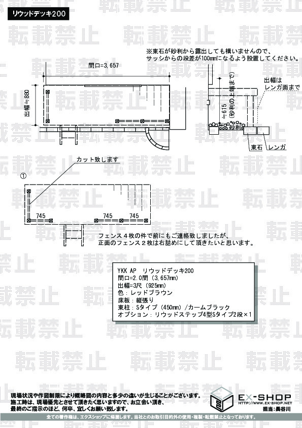 施工士ならびに弊社スタッフに、お褒めのお言葉をお寄せ頂き、誠に有り難うございます。リウッドデッキ200が掃き出し窓と段差なく納まり、使い勝手の良いウッドデッキが完成したのではないかと存じます。ラチスフェンスもお洒落で、温かみが感じられますね。これからも、このようなお褒めのお言葉を励みに、さらにご満足頂けるエクスショップを目指して、努力して参りたいと存じます。この度のご利用、誠に有難うございました。