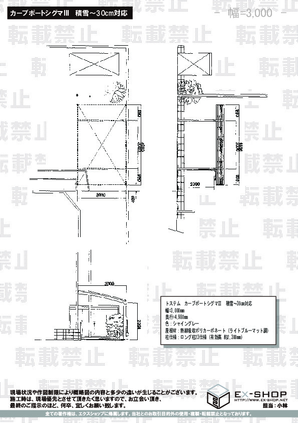 | サイズ | 幅 3,000mm 奥行 4,980mm |