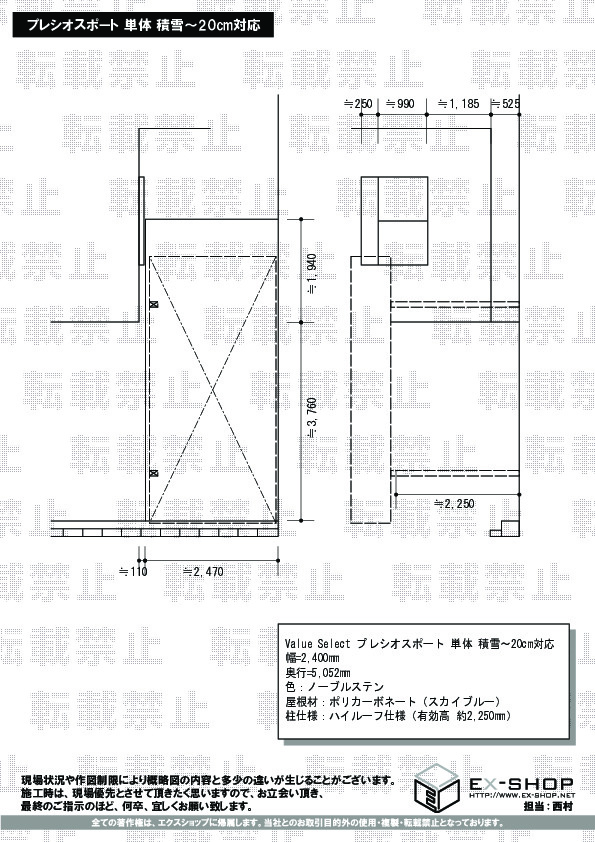 | 屋根材等 | ポリカーボネート(スカイブルー) |