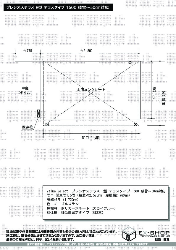 | サイズ | 屋根幅 2,760mm 出幅 1,770mm |