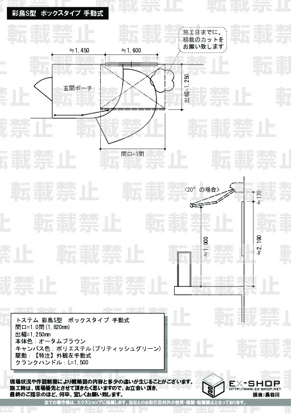 サイズ | 間口 1,820mm 出幅 1,250mm |