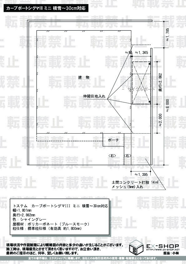 | 屋根高等 | 標準柱仕様(有効高 約1,800mm) |