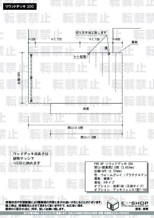 | サイズ | 間口 3,657mm 出幅 2,725mm |