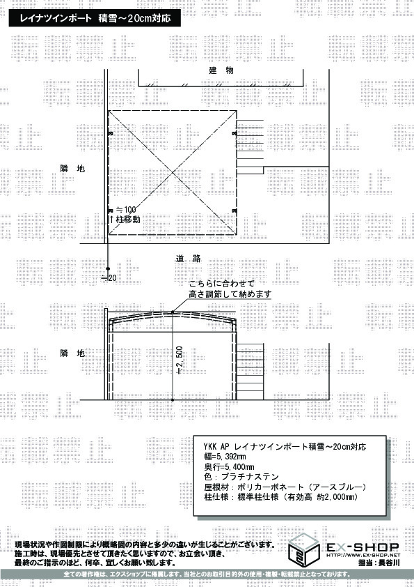 | 屋根高等 | 標準柱仕様(有効高:2000mm) |