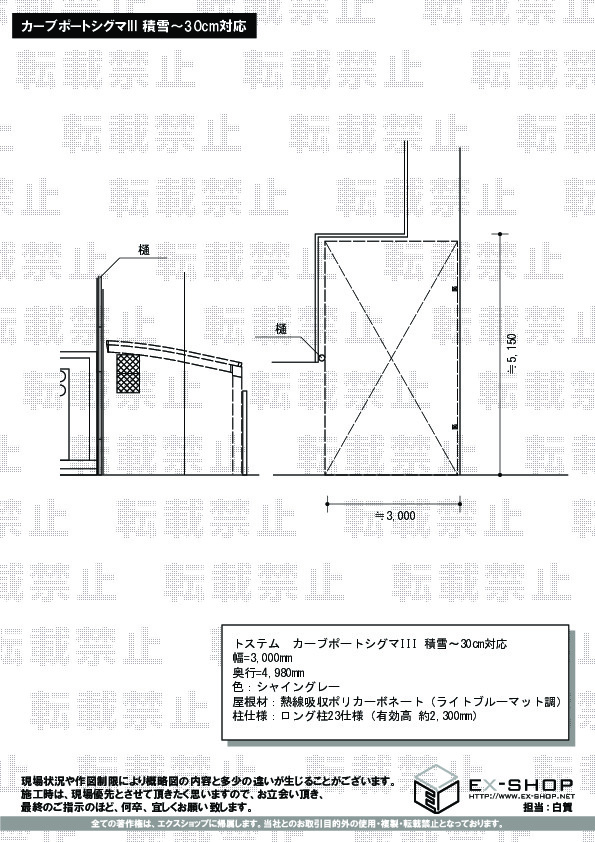 | サイズ | 幅 3,000mm 奥行 4,980mm |