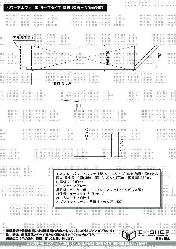 | サイズ | 屋根幅 5,360mm 出幅 885mm |