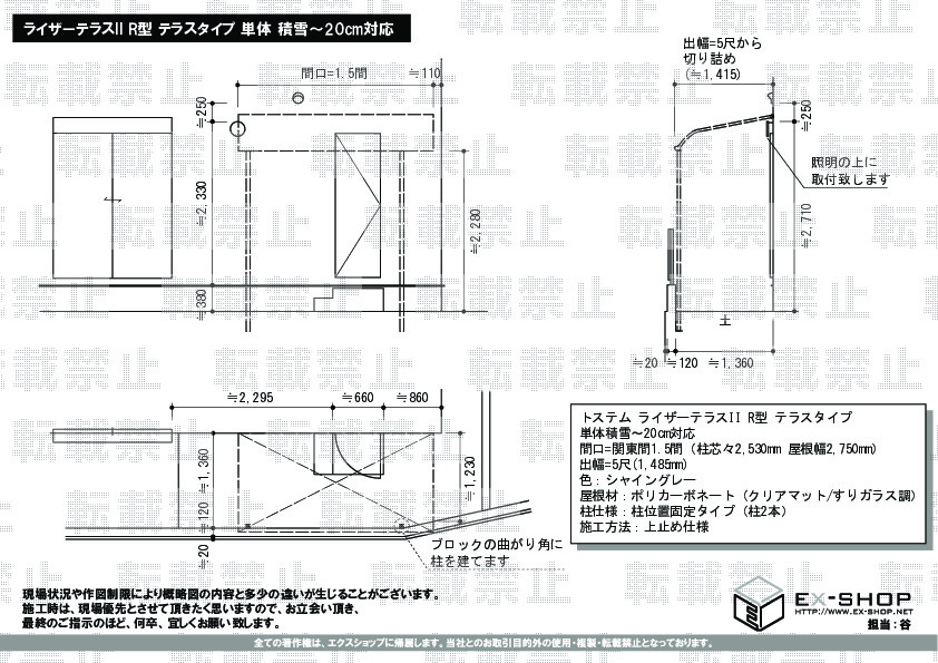 | サイズ | 屋根幅 2,750mm 出幅 1,485mm |